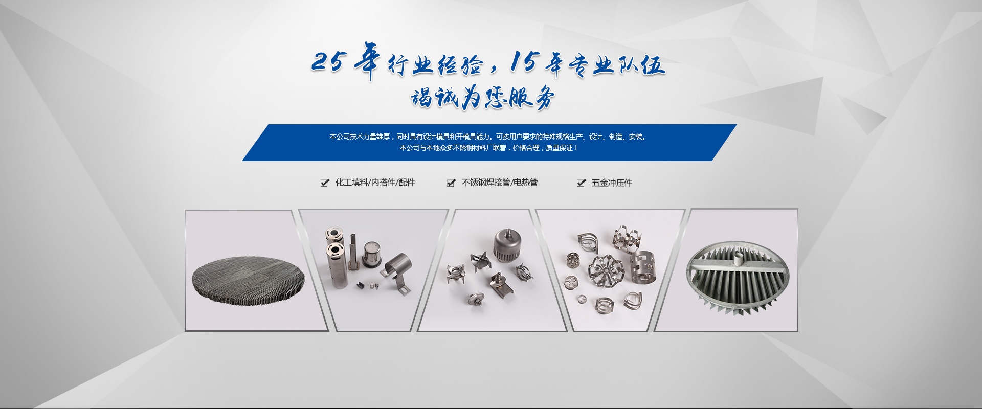 嘉興市久達(dá)不銹鋼有限公司原海鹽中晟不銹鋼有限公司,本公司是全國化工行業(yè)和中國石化總公司推薦新型填料、塔內(nèi)件及配件產(chǎn)品的專業(yè)生產(chǎn)廠。2009年建成標(biāo)準(zhǔn)化廠房,生產(chǎn)能力得到進(jìn)一步的提升,效率也更加高效。散堆填料采用高速沖床一次成型技術(shù)生產(chǎn)。